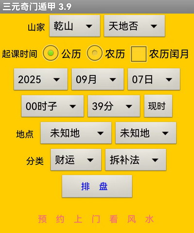 3.9版全面升级了三元奇门遁甲的数据库,让奇门断事变得更简单,不用去记复杂的数据,进入人工智能时代,只要会取用神,用软件查对断语就可以断事。