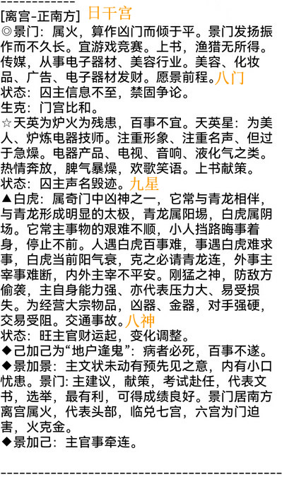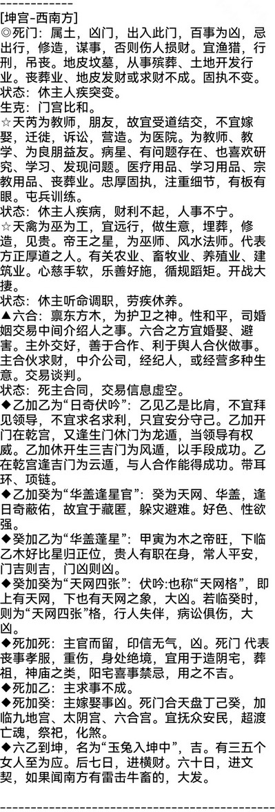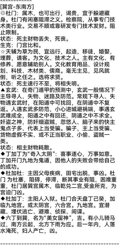5.如果生门不空不反吟又没有四害,落宫有比较吉,一般会有干万格局